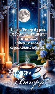 Пусть вечер будет добрым и станет успешным завершением сегодняшнего дня! Хорошего вечера!