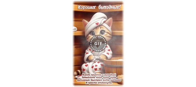 Анимированная открытка "Хороших выходных! Всегда приятно в выходной замедлить хоть чуть-чуть активный, быстрый ритм шальной"