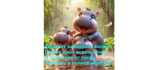 Теги:хороших выходных желаю пускай душа вовсю гуляет и отдохнуть от суеты сумеешь в полной мере ты