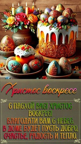Христос воскресе С Пасхой вас! Христос воскрес! Благодати вам с небес. В доме будет пусть добро, Счастье, радость и тепло
