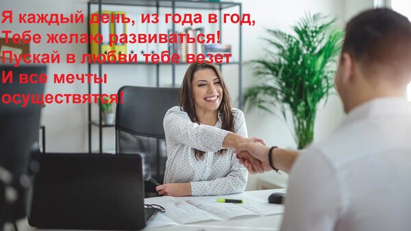 Открытка "Я каждый день, из года в год, Тебе желаю развиваться! Пускай в любви тебе везет И все мечты осуществ"