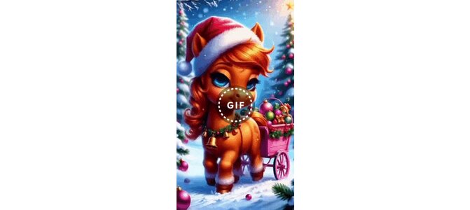 Анимированная открытка "Я Лошадка, я скачу! К вам на праздник Новый год! Счастье в копытце принесу. Радость пусть в ваш дом"