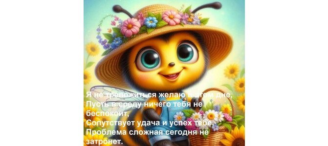 Теги:я не тревожиться желаю в этом дне, пусть в среду ничего тебя не беспокоит, сопутствует удача и успех тебе, проблема сложная сегодня не затронет