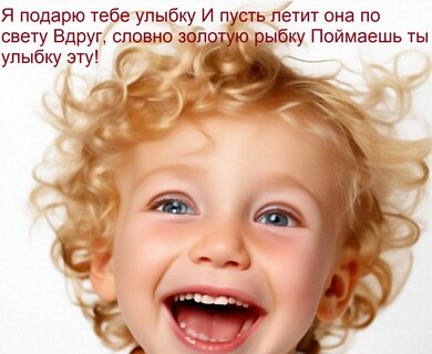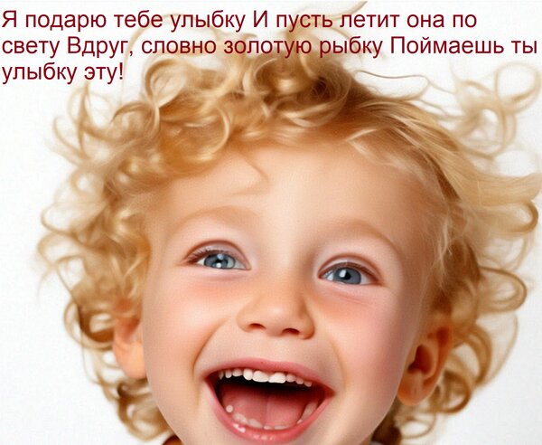 Открытка "Я подарю тебе улыбку и пусть летит она по свету. Вдруг, словно золотую рыбку поймаешь ты улыбку эту!"