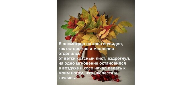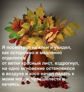 Открытка "Я посмотрел на клен и увидел, как осторожно и медленно отделился от ветки красный лист, вздрогнул, н"