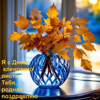 Открытка "Я с днем кленового листа тебя, родная, поздравляю"
