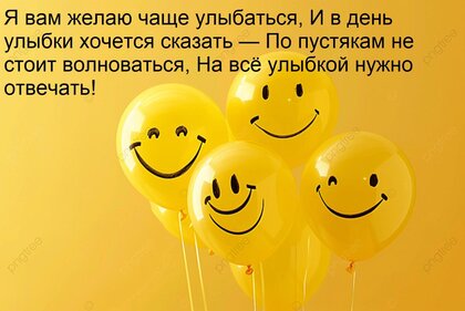 Открытка "Я вам желаю чаще улыбаться, и в день улыбки хочется сказать — по пустякам не стоит волноваться."