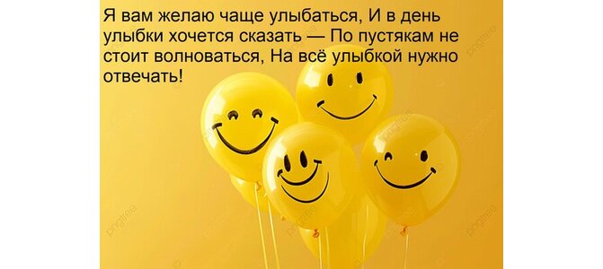 Теги:я вам желаю чаще улыбаться, и в день улыбки хочется сказать по пустякам не стоит волноваться, на всё улыбкой нужно отвечать