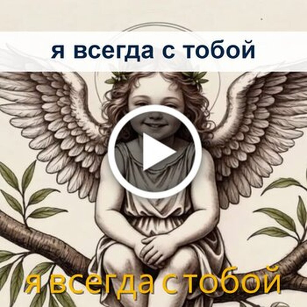 Это эстетичное видео представляет собой художественную анимацию с изображением маленького ангела, сидящего на ветке дерева. На рисунке в стиле классической графики запечатлен ребенок с крыльями, нимбом и веночком из листьев на голове. В процессе видео мимика ангела плавно меняется: он улыбается, прикрывает глаза и смотрит на зрителя, создавая атмосферу спокойствия и божественного присутствия. В финальной части ролика на изображении появляется надпись на русском языке я всегда с тобой, что придает видео глубокий духовный и утешительный смысл. Данный контент идеально подходит для медитации, поиска вдохновения или использования в качестве духовного послания.