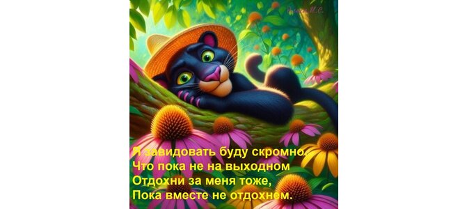 Открытка "Я завидовать буду скромно, Что пока не на выходном Отдохни за меня тоже, Пока вместе не отдохнем."