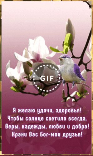 Анимированная открытка "Я желаю удачи, здоровья! Чтобы солнце светило всегда, веры, надежды, любви и добра! Храни вас Бог!"