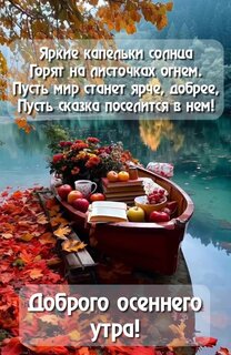 Яркие капельки солнца Горят на листочках огнем. Пусть мир станет ярче, добрее, Пусть сказка поселится в нем! Доброго осеннего утра!