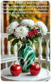 Желаю ярких выходных, пусть принесут они сюрпризы, побольше радостей больших, чтобы исполнить все капризы.