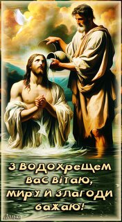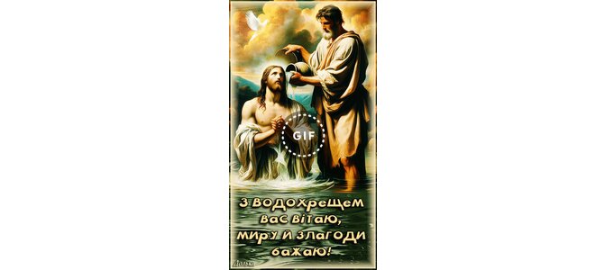 Анимированная открытка "З ВОДОХРЕЩЕМ ВАС ВІТАЮ!"