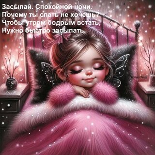 Открытка "Засыпай. Спокойной ночи. Почему ты спать не хочешь? Чтобы утром бодрым встать, Нужно быстро засыпать"