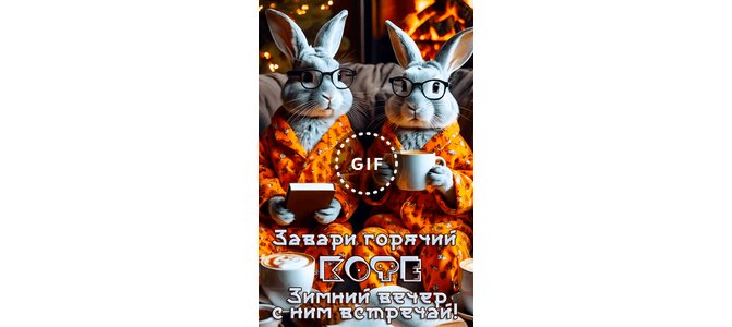 Теги:вечер, зимний вечер, вечер и кофе, вечерний кофе, зайцы, нейросеть