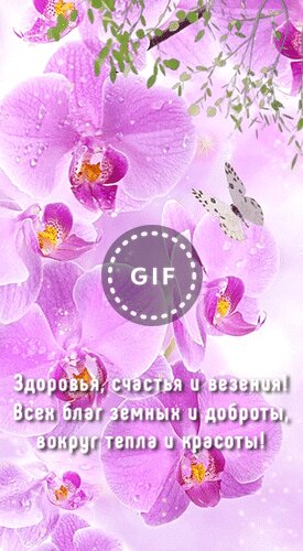 Анимированная открытка "Здоровья, счастья и везения! Всех благ земных и доброты, вокруг тепла и красоты!"
