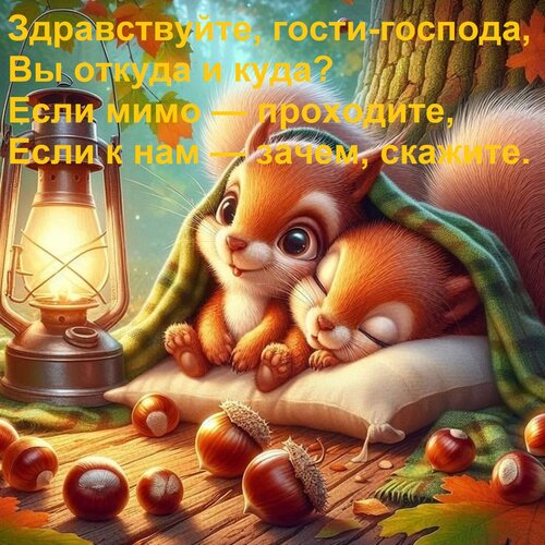 Открытка "Здравствуйте, гости-господа, вы откуда и куда? Если мимо — проходите, если к нам — зачем, скажите."