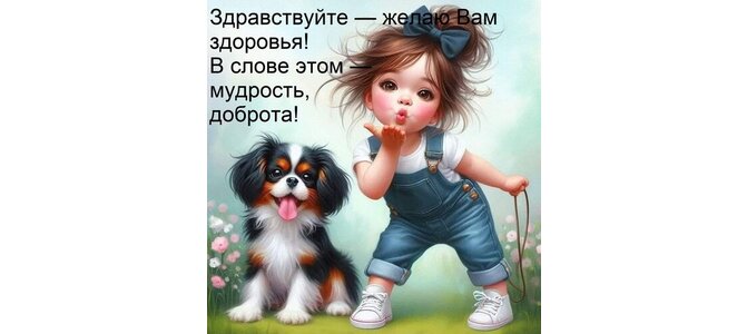 Открытка "Здравствуйте — желаю Вам здоровья! В слове этом — мудрость, доброта!"