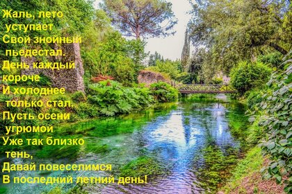 Открытка "Жаль, лето уступает Свой знойный пьедестал. День каждый короче И холоднее только стал. Пусть осени у"