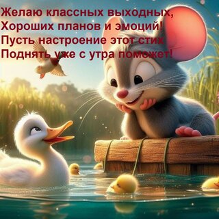 Открытка "Желаю классных выходных, хороших планов и эмоций! Пусть настроение этот стих поднять уже с утра поможет!"