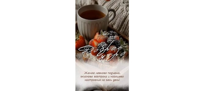 Открытка "Желаю легкого подъема, вкусного завтрака и хорошего настроения на весь день!"