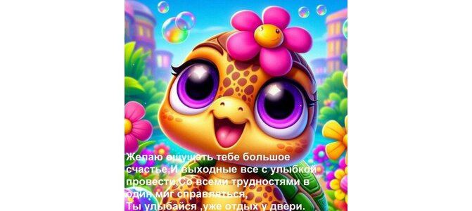 Теги:желаю ощущать тебе большое счастье, и выходные все с улыбкой провести, со всеми трудностями в один миг справляться, ты улыбайся, уже отдых у двери