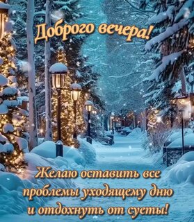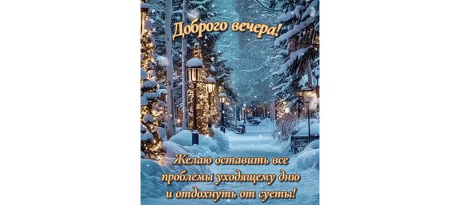 Доброго вечера! Желаю оставить все проблем уходящему дню и отдохнуть от суеты!