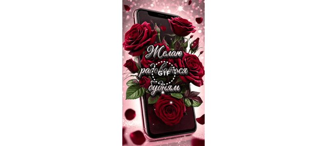 Анимированная открытка "Желаю радоваться будням и позитив в них находить. Дарить улыбку близким людям и самою счастливой быть!"