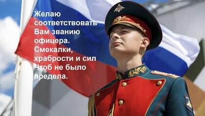 Теги:желаю соответствовать вам званию офицера смекалки, храбрости и сил чтоб не было предела