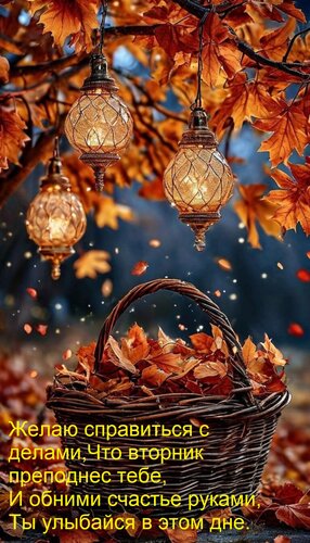 Теги:желаю справиться с делами, что вторник преподнес тебе, и обними счастье руками, ты улыбайся в этом дне