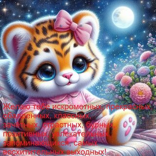 Теги:желаю тебе искрометных, прекрасных, обалденных, классных, зачётных, страстных, бурных, позитивных, увлекательных, запоминающихся, самых восхитительных выходных