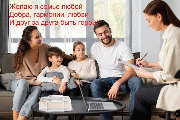 Желаю я семье любой добра, гармонии, любви и друг за друга быть горой!