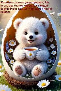 Открытка "Животных милых день пришел, так пусть все станет хорошо, у каждой кошки будет дом, и чтоб щенок приют нашел."