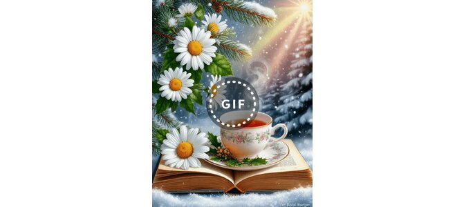 Теги:зима, снег, гиф, анимация, книга, чай, ромашки, цветы, лес, ель, доброе утро, добрый день, пожелания на каждый день