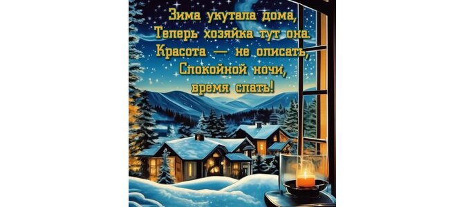 Открытка "Зима укутала дома, теперь хозяйка тут она. Красота - не описать, спокойной ночи, время спать!"