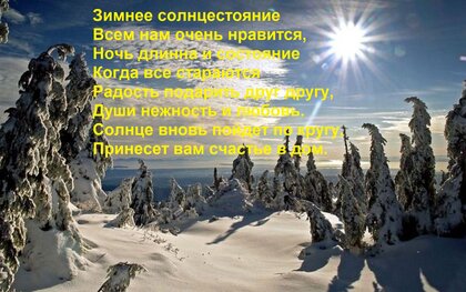 Открытка "Зимнее солнцестояние всем нам очень нравится, ночь длинна и состояние когда все стараются."