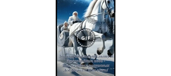 Анимированная открытка "Звон хрустальный слышу я в новогоднем небе - это в санках расписных Дед Мороз к нам едет!"