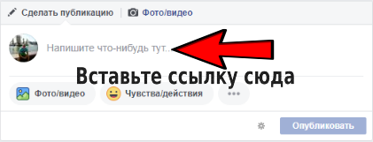 На странице друга есть поле для публикаций, где можно писать текст. Вставляем туда скопированную ссылку. При этом открытка подгрузится автоматически.